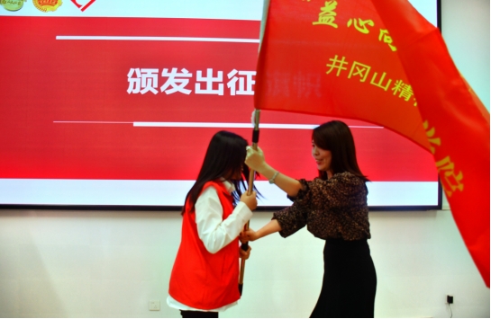 刘炼、王浓章、杜修望分别为三支团队进行授旗,宣讲团代表从领导手中接过出征旗帜,代表“井冈山精神”、“延安精神”、“西柏坡精神”宣讲团的宣讲之路正式开启。