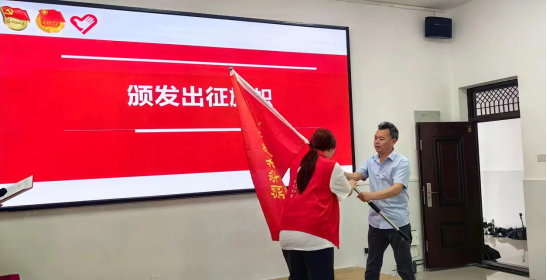 出征仪式首先刘炼部长宣读了团中央青年志愿者行动指导中心组织立项的通知,代表上级团组织祝贺三支团队。